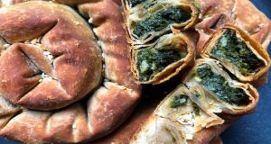 Υλικά 1 συσκευασία χωριάτικο φύλλο για πίτες 1 κιλό κατεψυγμένο σπανάκι 60-75 ml εξαιρετικό παρθένο ελαιόλαδο 250 γρ. ξηρό κρεμμύδι, ψιλοκομμένο 320 γρ. πράσα, ψιλοκομμένα 80 γρ....