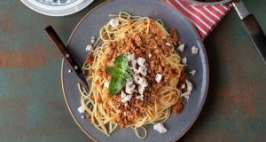 Συστατικά Για τον κιμά σόγιας 4 κ.σ. ελαιόλαδο 1 κρεμμύδι 2 σκ. σκόρδο 1 κ.σ. θυμάρι, φρέσκο 120 γρ. κιμά σόγιας 40 γρ. πελτέ ντομάτας 50 γρ. κρασί κόκκινο 1 λίτρο νερό 150 γρ. ντομάτα κονκασέ 1 φύλλο δάφνης 1/2 κ.γ. κανέλα 1 πρέζα μπαχάρι 1 πρέζα γαρίφαλο αλάτι πιπέρι 1 κ.γ. ρίγανη, ξερή...