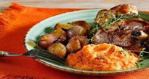 Υλικά 1 κοτόπουλο ελεύθερης βοσκής 45 γρ. ελαιόλαδο 1 κρεμμύδι, ψιλοκομμένο 3 μεσαία πράσα, ψιλοκομμένα 2 πιπεριές Φλωρίνης, ψιλοκομμένες 1 πράσινη πιπεριά, ψιλοκομμένή 170 γρ. γλυκό ή...