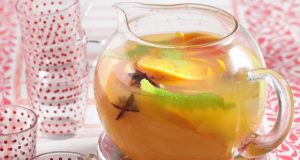 Υλικά Μερίδες: 8-10 1 λίτρο κρασί λευκό, αρωματικό (π.χ. μοσχοφίλερο) 70 γρ. ζάχαρη 500 γρ. φρέσκος χυμός μανταρινιού 2 ξυλάκια κανέλας 1 αστεροειδής γλυκάνισος (προαιρετικά) 1 πορτοκάλι...