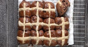 Συστατικά 300 γρ. γάλα, 3,5% 60 γρ. βούτυρο 520 γρ. αλεύρι γ.ο.χ., + έξτρα για το αλεύρωμα του πάγκου 35 γρ. κακάο 7 γρ. μαγιά ξηρή 100 γρ. ζάχαρη κρυσταλλική 2 κ.γ. κανέλα 1/2 κ.γ. μπαχάρι 2 αβγά, μέτρια, χτυπημένα 1 κ.γ. εκχύλισμα βανίλιας 200 γρ. κουβερτούρα 1 κ.γ. ελαιόλαδο, για το άλειμμα...