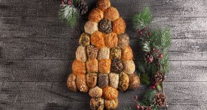 Συστατικά 300 γρ. νερό 16 γρ. μαγιά ξηρή 35 γρ. ζάχαρη κρυσταλλική 350 γρ. αλεύρι γ.ο.χ. 150 γρ. αλεύρι σκληρό αλάτι Για τη σύνθεση 200 γρ. μοτσαρέλα, σε μπαλάκια 100 γρ. βούτυρο, λιωμένο 50 γρ. σουσάμι 50 γρ. σουσάμι, μαύρο 50 γρ. παπαρουνόσπορο 100 γρ. γραβιέρα, τριμμένη 100 γρ. τσένταρ, τριμμένο 1/4 ματσάκι μαϊντανό Για το σερβίρισμα...