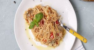 Συστατικά 500 γρ. σπαγγέτι, ολικής άλεσης 1 κρεμμύδι 300 γρ. ντομάτες 1 σκ. σκόρδο 1 κ.γ. μπούκοβο 1 πρέζα ζάχαρη κρυσταλλική αλάτι πιπέρι 2-3 κ.σ. ελαιόλαδο...