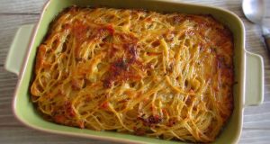 Συστατικά 350 γραμμάρια κονσέρβες τόνου 250 γραμμάρια μακαρόνια 2 μεσαίες ώριμες ντομάτες 1 μεγάλο κρεμμύδι 125 γραμμάρια τριμμένο τυρί 50 ml ελαιόλαδο 1 κρόκος αυγού Πιπέρι...
