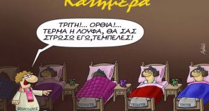 Με ένα σκίτσο o Αρκάς σχολιάζει την σημερινή ημέρα. Ο γνωστός σκιτσογράφος, αυτή τη φορά καλεί την «Τρίτη» να σηκωθεί όρθια λέγοντας μας καλημέρα. «Τρίτη!… Όρθια!…...
