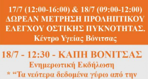 Το ΚΕΝΤΡΟ ΥΓΕΙΑΣ ΒΟΝΙΤΣΑΣ σε συνεργασία με τον ΣΥΛΛΟΓΟΣ ΣΚΕΛΕΤΙΚΗΣ ΥΓΕΙΑΣ, ΠΕΤΑΛΟΥΔΑ το ΚΕΝΤΡΟ ΚΟΙΝΩΝΙΚΗΣ ΜΕΡΙΜΝΑΣ ΚΑΙ ΑΝΑΠΤΥΞΗΣ του ΔΗΜΟΥ ΑΚΤΙΟΥ ΒΟΝΙΤΣΑΣ και το ΚΑΠΗ ΒΟΝΙΤΣΑΣ ...