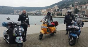 Στην Αμφιλοχία έκαναν μια μικρή στάση ξεκούρασης πριν λίγο οι φίλοι της βέσπας ο Κυριάκος από το vespa for life Κύπρου ο Σταύρος και ο Γιάννης...