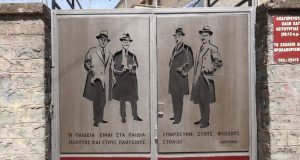 Στην ανατολική θύρα του προαυλίου των Παπαστρατείων Εκπαιδευτηρίων στο Αγρίνιο φιλοτεχνήθηκε με ένα έξυπνο τρόπο η φωτογραφία των αδελφών Παπαστράτου οι οποίοι υπήρξαν οι μεγάλοι ευεργέτες...