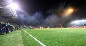 Οι οπαδοί του Παναθηναϊκού άναψαν δεκάδες μαύρα καπνογόνα μετά την ενός λεπτού σιγή που κρατήθηκε στη Λεωφόρο στη μνήμη των θυμάτων του πολύνεκρου δυστυχήματος στα Τέμπη....