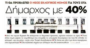 Tα*3 βασικά σημεία του νέου νόμου για τις αυτοδιοικητικές εκλογές: – Εκλογή δημάρχου και περιφερειάρχη από τον πρώτο γύρο με δύο προϋποθέσεις: Να συγκεντρώνει τουλάχιστον 40...