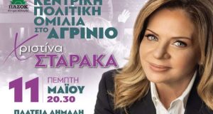 Κορυφώνει την προεκλογική της εκστρατεία σήμερα στο Αγρίνιο η υποψήφια του ΠΑ.ΣΟ.Κ. – Κίνημα Αλλαγής, Χριστίνα Σταρακά, με μεγάλη ανοικτή συγκέντρωση στην Πλατεία Δημάδη (άνωθεν δημοτικού...