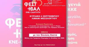 48ο ΦΕΣΤΙΒΑΛ ΚΝΕ – ΟΔΗΓΗΤΗ Εκδήλωση στο Μεσολόγγι την Κυριακή 4 Σεπτέμβρη Συνεχίζει το «ταξίδι» του στην Αιτωλοακαρνανία το 48ο Φεστιβάλ ΚΝΕ – Οδηγητή που με κεντρικό σύνθημα «Η νέα...