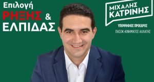 Ο υποψήφιος Πρόεδρος του ΠΑ.ΣΟ.Κ. Μιχάλης Κατρίνης επισκέπτεται απόψε (28/8) το Μεσολόγγι, συνεχίζοντας την επικοινωνία του με τους πολίτες.