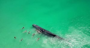 Μια μεγάλη φάλαινα εθεάθη να κολυμπά σε ρηχά νερά σε μια παραλία στο Περθ της Αυστραλίας, όπως έδειξε βίντεο που κατέγραψε αυτόπτης μάρτυρας το Σάββατο (9...