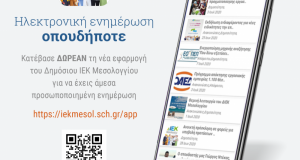 Δημοσιεύθηκε στο Google play η επίσημη εφαρμογή του Δημόσιου ΙΕΚ Μεσολογγίου για Android έξυπνες κινητές συσκευές. Την εφαρμογή μπορείτε να την αναζητήσετε απευθείας στο Google play περιβάλλον ή...
