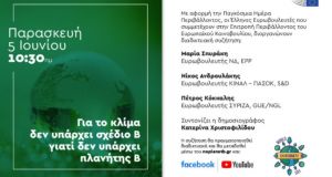 «Για το κλίμα δεν υπάρχει σχέδιο Β’ γιατί δεν υπάρχει πλανήτης Β’» Διαδικτυακή εκδήλωση: Παρασκευή 5 Ιουνίου στις 10:30πμ Με αφορμή την Παγκόσμια Ημέρα Περιβάλλοντος 2020,...