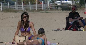 Δεκάδες πολίτες έσπευσαν να απολαύσουν το μπάνιο τους, να κάνουν ηλιοθεραπεία και να παίξουν στην αμμουδιά Γεμάτη από κόσμο ήταν και σήμερα η παραλία στην Επανομή Θεσσαλονίκης....