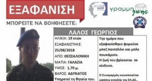 Αίσιο τέλος είχε η περιπέτεια του 19χρονου στρατιώτη, που αγνοούνταν από το Σάββατο στη Θεσσαλονίκη. Χθες το βράδυ ο Γιώργος Λάλος εντοπίστηκε στο κέντρο της Θεσσαλονίκης....