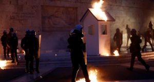 Σοβαρά επεισόδια ξέσπασαν έξω από τη Βουλή όταν μια μεγάλη ομάδα διαδηλωτών επιχείρησε να ανέβει στο περιστύλιο της Βουλής μπροστά από το μνημείο του Άγνωστου Στρατιώτη....