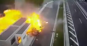 Ο οδηγός της πόρσε φαίνεται να έχει χάσει τον έλεγχο του οχήματός του – Φεύγει εκτός Εθνικής, μπαίνει στον παράδρομο και πέφτει με το πλάι στο...