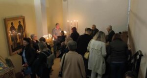 Στο Αγρίνιο την Παρασκευή, 31 Οκτωβρίου 2025 μικροί και μεγάλοι σπεύδουν από νωρίς στο Παρεκκλήσι των Αγίων Αναργύρων για τον Εσπερινό, παραμονή της Εορτής.