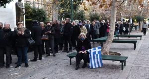 Πλήθος κόσμους περιμένει στην τεράστια ουρά έχει σχηματιστεί έξω από το παρεκκλήσι του Αγίου Ελευθερίου στη Μητρόπολη Αθηνών, για το λαϊκό προσκύνημα στη σορό του Τέως...