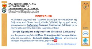 Διαδικτυακή Επετειακή Επιστημονική Εκδήλωση με θέμα: «Συνήθη Ερωτήματα πασχόντων από Πολλαπλή Σκλήρυνση» ΠΡΟΣΚΛΗΣΗ Το Διοικητικό Συμβούλιο της «Ελληνικής Ένωσης για την Αντιμετώπιση της Σκλήρυνσης Κατά Πλάκας...
