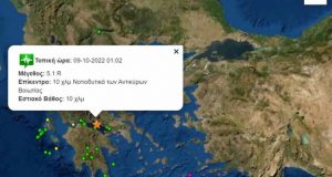 Σεισμική δόνηση μέγεθος 5,1 βαθμών της κλίμακας ρίχτερ σημειώθηκε στη 1:02 π.μ., της Κυριακής 9 Οκτωβρίου 2022, με επίκεντρο σε θαλάσσια περιοχή, 16 χλμ Ν.Α. του...