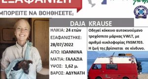 Συναγερμός έχει σημάνει στα Ιωάννινα έπειτα από την εξαφάνιση 24χρονης Γερμανίδας τουρίστριας. Η Daja Krause, έκανε διακοπές με ένα κόκκινο αυτοκινούμενο τροχόσπιτο μάρκας VW LT και...