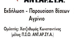 Με αφορμή την επερχόμενη συνδιάσκεψη της ΑΝΤ.ΑΡ.ΣΥ.Α., το Σάββατο 24 Μαρτίου στις 7:30 μ.μ. στη Λέσχη “Ρωγμή”, στον πεζόδρομο Παπαστράτου θα πραγματοποιηθεί πολιτική εκδήλωση (παρουσίαση θέσεων) στην οποία ομιλητής θα...