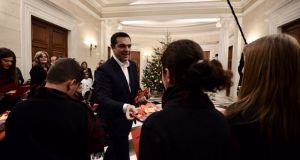 Εντυπωσιάστηκε από τα κάλαντα της Χίου, αλλά ήθελε να ακούσει και το «Καλήν ημέραν άρχοντες» ο πρωθυπουργός, που αστειεύτηκε με τα παιδιά και για τα δώρα...