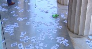 Τα μέτρα ασφαλείας στον προαύλιο χώρο της Βουλής παραβίασε η αναρχική ομάδα του «Ρουβίκωνα» και πέταξε φέιγ βολάν, με αίτημα για αποφυλάκιση της Ηριάννας και του Περικλή....