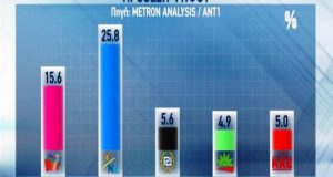 Προβάδισμα 10,2% της ΝΔ έναντι του ΣΥΡΙΖΑ καταγράφεται στη δημοσκόπηση της Metron Analysis που παρουσιάστηκε στο κεντρικό δελτίο ειδήσεων του ΑΝΤ1 με τον Νίκο Χατζηνικολάου. Συγκεκριμένα,...