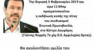 Η ώρα των συλλογικών αποφάσεων για τις δημοτικές εκλογές έφθασε! Κυριακή 3 Φεβρουαρίου 2019, 5.30 μμ, Ξενοδοχείο Liberty. Η συμμετοχή όλων και η έκφραση γνώμης αναγκαία. Παναγιώτης...