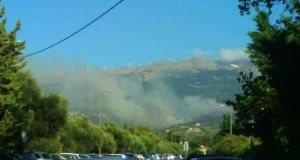 17.57 Οι φλόγες καίνε χαμηλή βλάστηση στην περιοχή ενώ πολύ κοντά στις εστίες της φωτιάς βρίσκονται κατοικίες. 17.54 Δυο καναντέρ έχουν ριχτεί στη μάχη με τις φλόγες στη θέση...