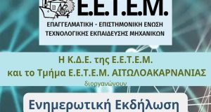 Ενημερωτική Εκδήλωση της Κ.Δ.Ε. της Ε.Τ.Ε.Ε.Μ. και της Ε.Τ.Ε.Ε.Μ. Αιτωλ/νίας, το Σάββατο 4 Φεβρουαρίου 2023, στις 17.00, στο Τ.Ε.Ε. Αιτωλ/νίας, με εισηγητή τον κ. Σαλευρή Αντώνη...