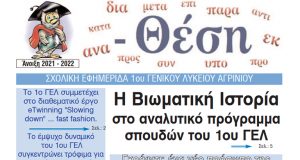 Η εφημερίδα «Άνοιξη 2022» του 1ου Γενικού Λυκείου Αγρινίου ΕΦΗΜΕΡΙΔΑ ΑΝΟΙΞΗ 2022