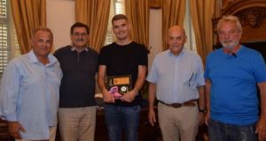 Τον Δήμαρχο Πατρέων, Κώστα Πελετίδη, επισκέφθηκε, πραγματοποιώντας εθιμοτυπική επίσκεψη, την Παρασκευή 27 Ιουλίου, στις 7 το απόγευμα στο Δημαρχείο, ο Έλληνας πρωταθλητής κολύμβησης και αργυρός Ολυμπιονίκης...