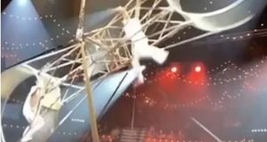 Η σοκαριστική πτώση ενός ακροβάτη από ύψος 5 μέτρων από έναν «γιγαντιαίο τροχό θανάτου» κατά τη διάρκεια ενός ακροβατικού νούμερου σε τσίρκο, καταγράφηκε από την κάμερα...