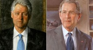 Τα επίσημα πορτρέτα του Μπιλ Κλίντον και του Τζορτζ Ουόκερ Μπους, που κοσμούσαν τον προθάλαμο εισόδου του Λευκού Οίκου, όπου ο Ντόναλντ Τραμπ μπορούσε να τα βλέπει...