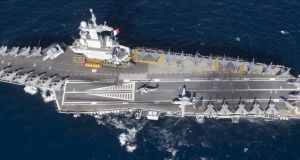 Η Ομάδα Μάχης του γαλλικού πυρηνοκίνητου αεροπλανοφόρου R91 Charles de Gaulle (μία φρεγάτα FREMM, ένα πυρηνικό υποβρύχιο κι ένα πλοίο διοίκησης και ανεφοδιασμού και φυσικά το...