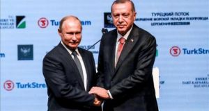 Ο Τούρκος Πρόεδρος Ρετζέπ Ταγίπ Ερντογάν και ο Ρώσος ομόλογός του Βλαντιμίρ Πούτιν παρέστησαν τη Δευτέρα σε τελετή για την ολοκλήρωση της κατασκευής του υπεράκτιου τμήματος...