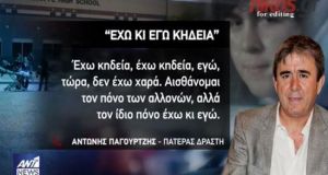 «Έχω κηδεία, έχω κηδεία, εγώ τώρα δεν έχω χαρά», είπε με τρεμάμενη φωνή ο πατέρας του 17χρονου μακελάρη σε λύκειο του Τέξας, Αντώνης Παγουρτζής και πρόσθεσε: «Αισθάνομαι τον πόνο...