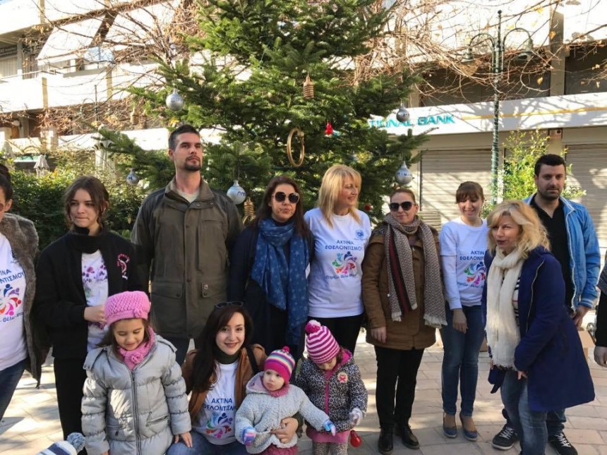 Η Ακτίνα Εθελοντισμού στόλισε σήμερα το πρωί το δέντρο της Πλατείας Παναγοπούλου (Συντριβάνι) με στολίδια από ανακυκλώσιμα υλικά μεταδίδοντας το μήνυμα της επανάχρησης.