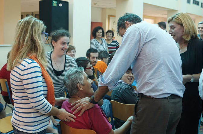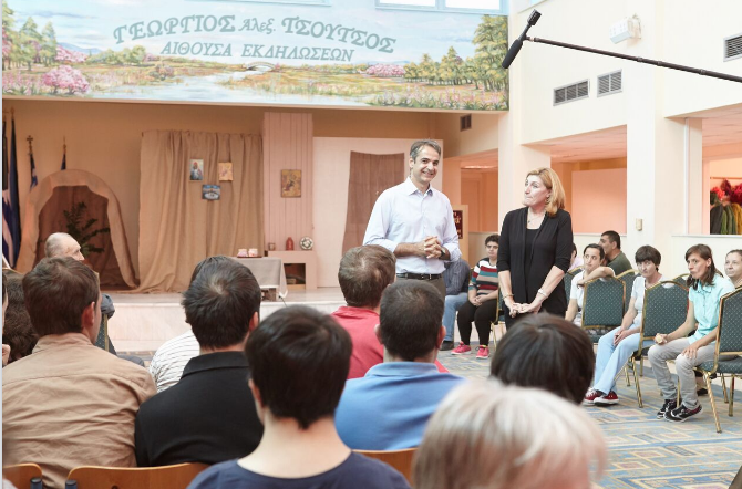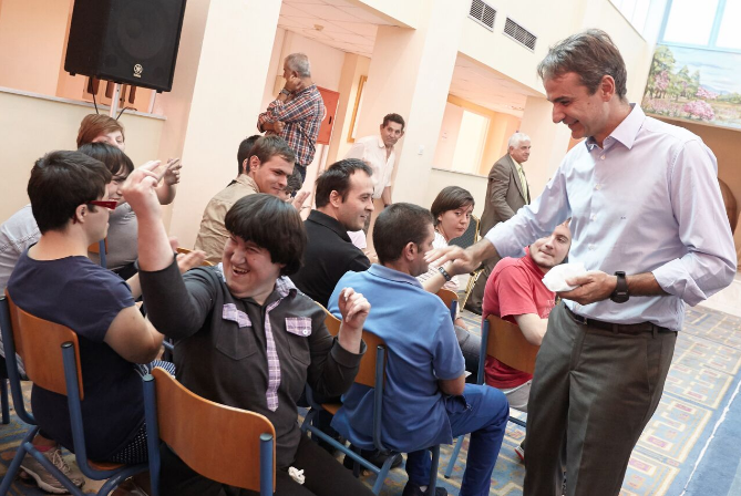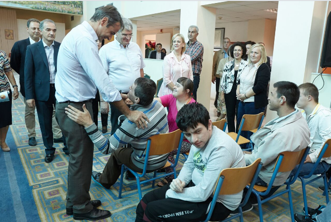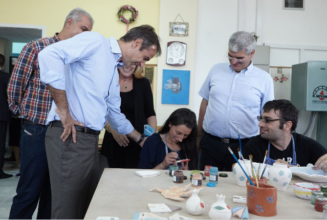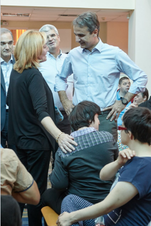 Το Εργαστήρι «ΠΑΝΑΓΙΑ ΕΛΕΟΥΣΑ» υποδέχθηκε σήμερα, 6 Οκτωβρίου 2016, στην Β΄ Εκπαιδευτική Μονάδα στο Αγρίνιο, τον αρχηγό της αξιωματικής αντιπολίτευσης και Πρόεδρο του κόμματος της Ν.Δ. κ. Κυριάκο Μητσοτάκη. Ομάδα της χορωδίας των εκπαιδευομένων νέων τον καλωσόρισε με τραγούδι και του πρόσφερε λουλούδια. Ο κ. Μητσοτάκης ξεναγήθηκε από την Πρόεδρο κ. Διονυσία Σαμαντά, το Διευθυντή κ. Δημήτρη Χειμαριώτη και μέλη του Δ.Σ. στα εργαστήρια της υφαντικής, κεραμικής και στο τμήμα αυτισμού. Υπέγραψε στο βιβλίο επισκεπτών και ακολούθως έδωσε συνέντευξη στα τοπικά τηλεοπτικά δίκτυα ενημέρωσης, στην οποία εξέφρασε τη χαρά και τη συγκίνησή του από την επίσκεψη στο Εργαστήρι, τη δομή υποστήριξης των πιο αδύναμων παιδιών. Συνεχάρη την Πρόεδρο, το Δ.Σ., τους εργαζόμενους και όλους τους εθελοντές για την κατάθεση της αγάπης τους προκειμένου να λειτουργήσει με επιτυχία ο Φορέας. Ο εθελοντισμός, συνέχισε, είναι βάλσαμο για την αντιμετώπιση των κοινωνικών ανισοτήτων και χρέος της κοινωνίας είναι να σταθεί κοντά σε τέτοιου είδους έργα που συμπληρώνουν με τον καλύτερο τρόπο τις δημόσιες Δομές. Η Πρόεδρος, αφού τον ευχαρίστησε, υπογράμμισε ότι όλοι όσοι εργάζονται για το Εργαστήρι «ΠΑΝΑΓΙΑ ΕΛΕΟΥΣΑ», δίνουν λίγα και παίρνουν πολλά. Στη συνέχεια ενώπιον των εκπαιδευομένων και των παρευρισκόμενων και μετά τη σύντομη αναφορά της Προέδρου στην διαδρομή του Εργαστηρίου και την έκκλησή της «Μη μας ξεχνάτε», ο κ. Μητσοτάκης θύμισε ότι πριν δέκα χρόνια είχε επισκεφθεί το Εργαστήρι με την αφορμή ποδοσφαιρικού αγώνα, στις 14/4/2006, μεταξύ των ποδοσφαιρικών ομάδων του ελληνικού Κοινοβουλίου και του Συνδέσμου Διαιτητών νομού Αιτωλ/νίας για τους σκοπούς του Εργαστηρίου «ΠΑΝΑΓΙΑ ΕΛΕΟΥΣΑ». Επεσήμανε την μεγάλη εξέλιξη που διαπίστωσε μέσα σε αυτό το χρονικό διάστημα. Εξέφρασε την ευγνωμοσύνη του και τα συγχαρητήριά του. Με την παρουσία του, ισχυρίστηκε ότι θέλησε να τιμήσει το έργο και τη μητέρα του Μαρίκα Μητσοτάκη, που έδωσε αγώνες για να ενταχθούν τα ΑμεΑ στην κοινωνία. Υποστήριξε ότι είναι αναγκαία η αξιολόγηση των Δομών προκειμένου οι λιγοστοί πόροι, που διαθέτει η Πολιτεία για την κοινωνική μέριμνα, να κατανέμονται ορθολογικά. Έδωσε την υπόσχεσή του ότι θα σταθεί αρωγός στην προσπάθεια του Εργαστηρίου «ΠΑΝΑΓΙΑ ΕΛΕΟΥΣΑ», που συμβάλλει στην κοινωνική πρόνοια. Τον κ. Μητσοτάκη συνόδευαν οι βουλευτές του νομού κ. Μάριος Σαλμάς, κ. Κώστας Καραγκούνης, ο πρώην Βουλευτής κ. Σπήλιος Λιβανός, ο Πρόεδρος της ΝΟΔΕ Αιτωλοακαρνανίας της Νέας Δημοκρατίας κ. Φώτης Τσόλκας καθώς και πολιτευτές του νομού.