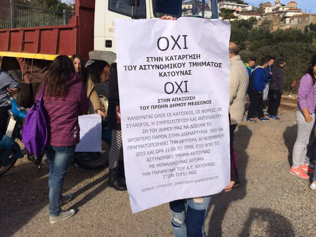 Συγκέντρωση διαμαρτυρίας πραγματοποιήθηκε σήμερα, μπροστά στο Α.Τ. Κατούνας, όπου κάτοικοι ζητούν τη παραμονή του Αστυνομικού τμήματος .