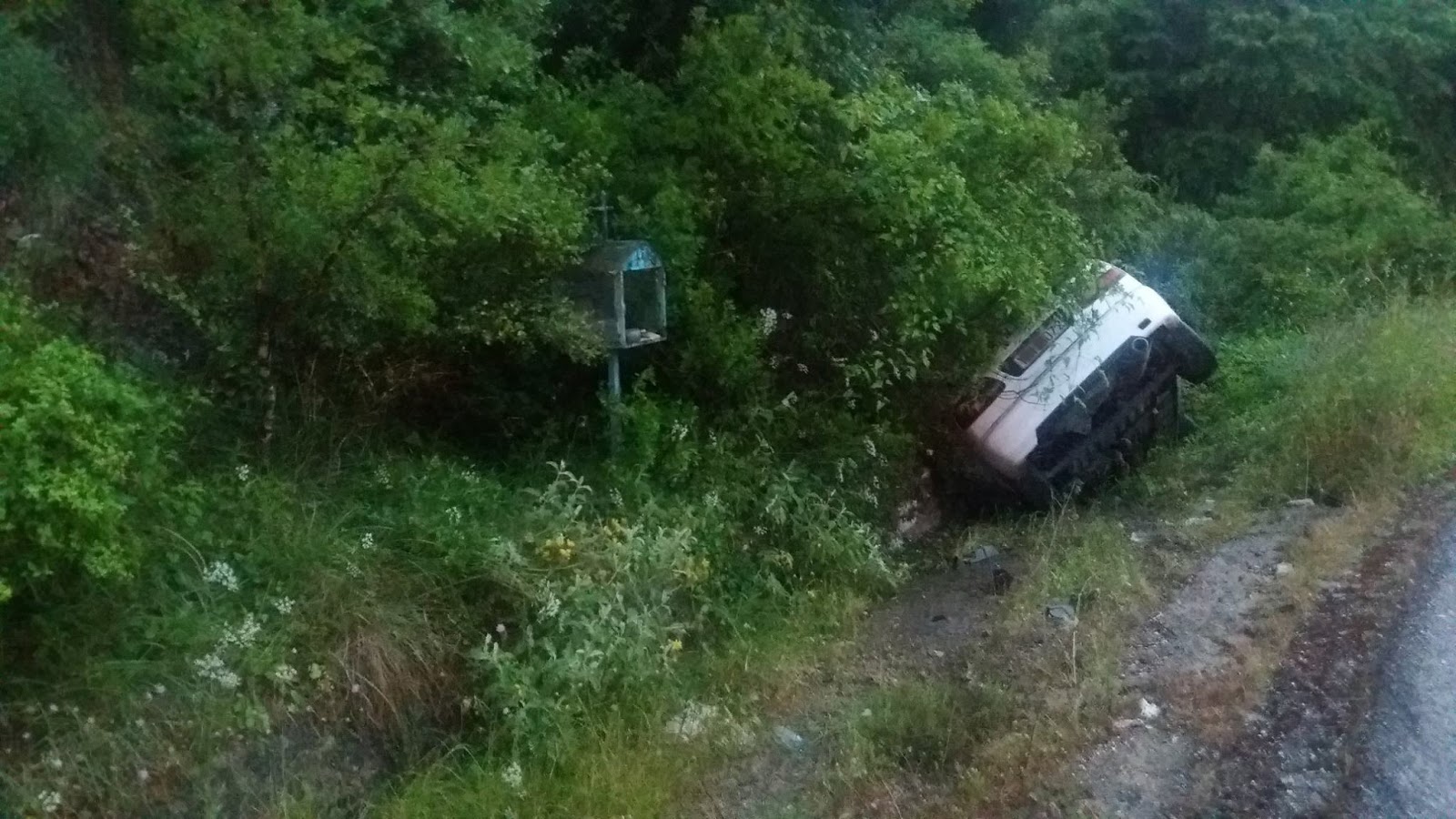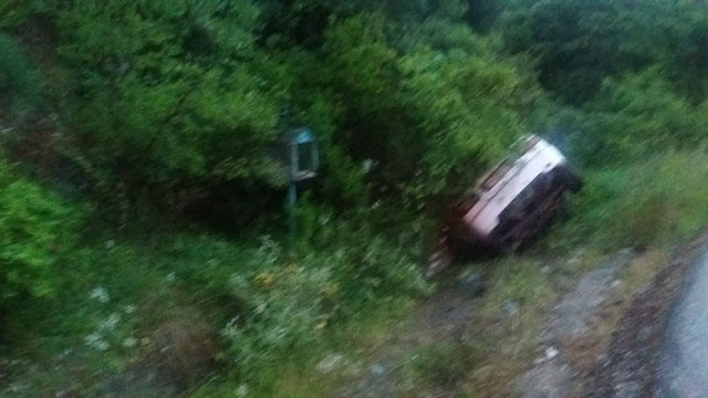 Το ατύχημα συνέβη στην κλειστή στροφή αμέσως μόλις περάσουμε το χωριόΠαλιάμπελα και το λευκό όχημα εξετράπη της πορείας του και ανετράπη.