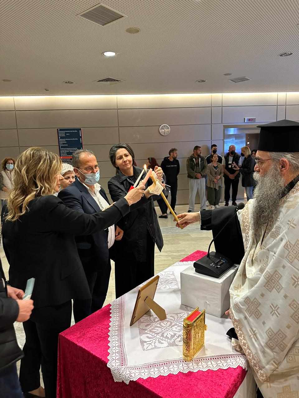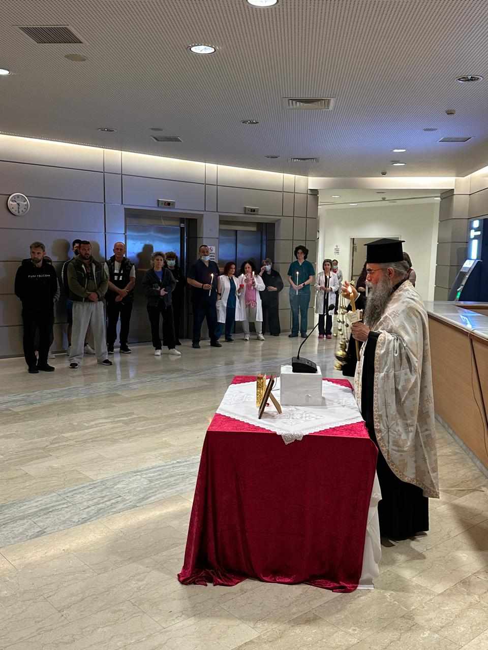 Εκεί περιηγήθηκε στα τμήματα, όπου είχε την ευκαιρία να ανταλλάξει τις αναστάσιμες ευχές με το ιατρικό και νοσηλευτικό προσωπικό .