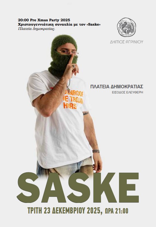 Χριστούγεννα 2025: Στις 23 Δεκεμβρίου ο Αγρινιώτης Saske τραγουδά live στην Πλατεία Δημοκρατίας!
