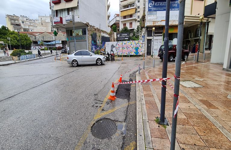 «Παρακαλούμε για την προσοχή των διερχομένων οδηγών στην διασταύρωση των οδών Σκαλτσοδήμου – Λουριώτου, έναντι ταχυδρομίου, λόγω καθίζησης.